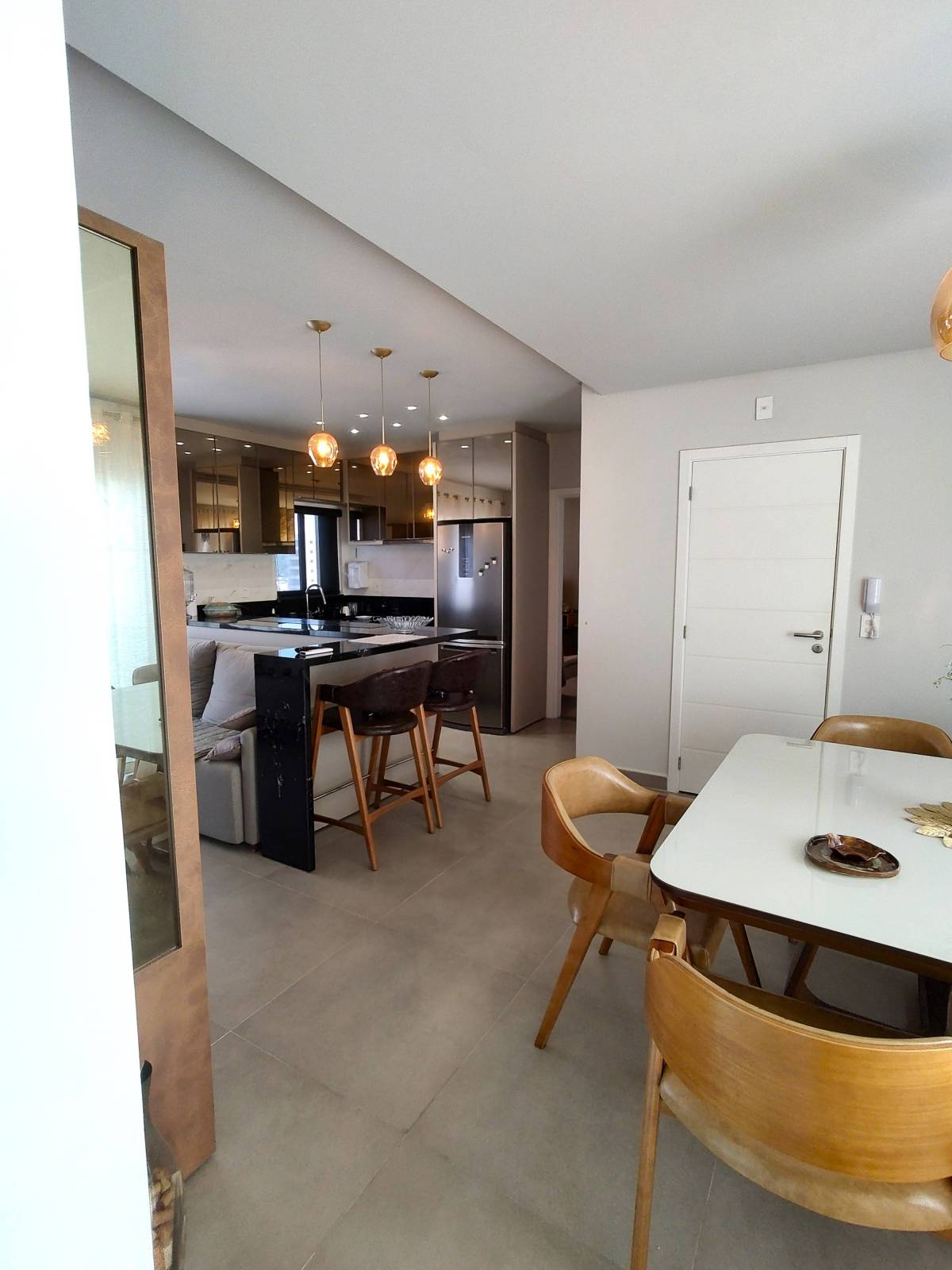 *Descrição unidade*: - Living - Lavabo - Cozinha - Área de Serviço - Espera para split - Acabamento em gesso - Churrasqueira - Porcelanato - Ar Condicionado - Armário Embutido - Hidrômetro Individual - Sacada - Closet - Sala de Estar - Interfone - Circuito Tv - Cozinha Americana - Banheiro Social - Varanda Gourmet - Internet - Gás Individual - Móveis Planejados - Armário Cozinha - Vista Mar