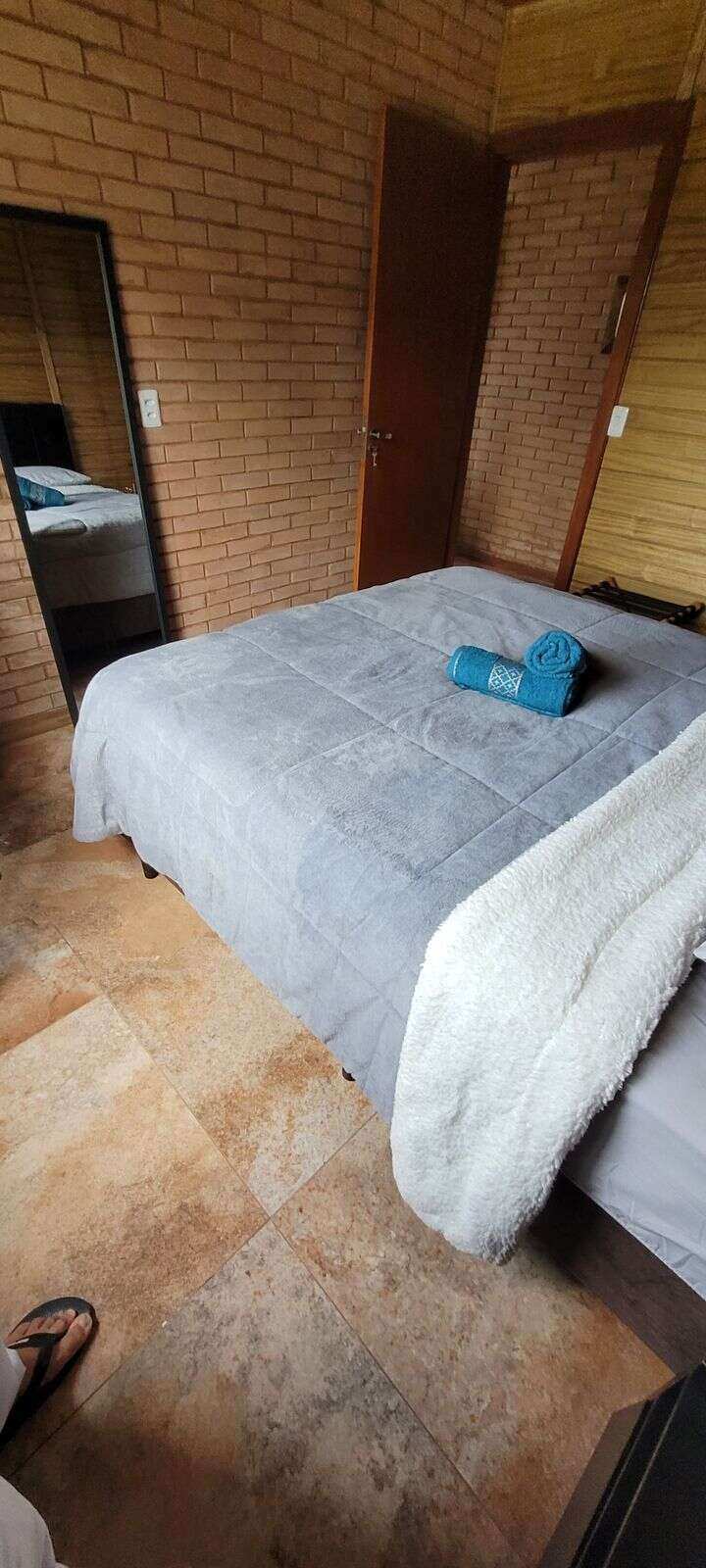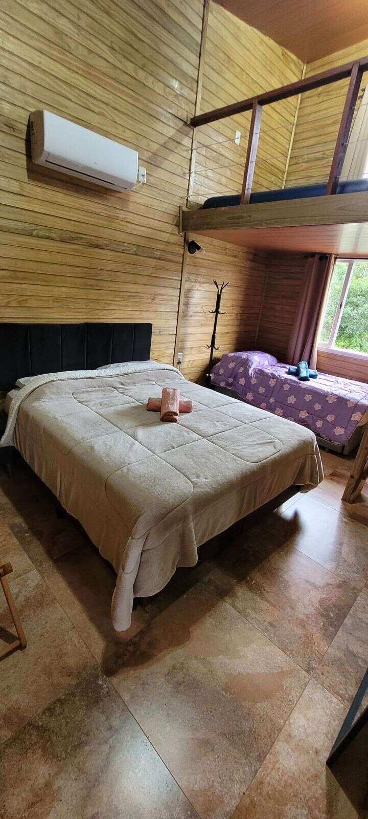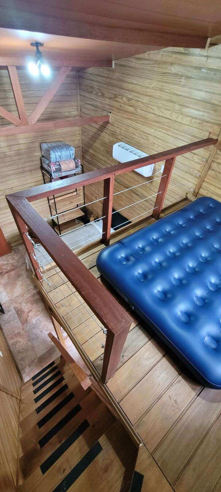 Capacidade para hospedar até 10 pessoas: 6 camas (3 de casal e 2 de solteiro), 1 colchão inflável no mezanino e 1 sofá-cama na sala.